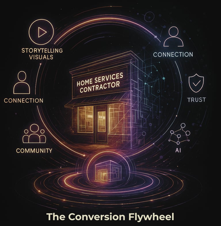 We build a Conversion Flywheel that fuses story, authentic media, AI, and automation to communicate value in seconds, grow trust, and turn visibility into long-term growth.
